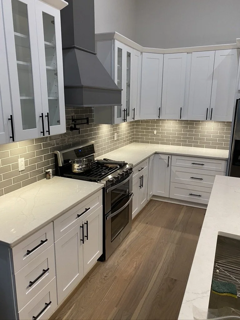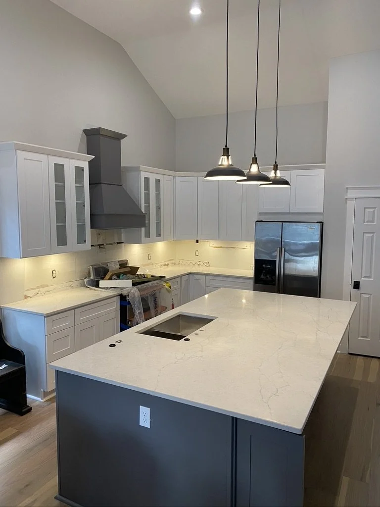 This was a full-scale renovation that transformed the entire space! We removed walls and vaulted the ceiling to open up the layout and flood the kitchen with light. The homeowners loved their neighborhood, so staying put made perfect sense-and upgrade was all it needed. With new flooring throughout, custom cabinetry topped with stone counters, and warm under-cabinet lighting, every detail came together to create a bright, modern kitchen that feels brand new!