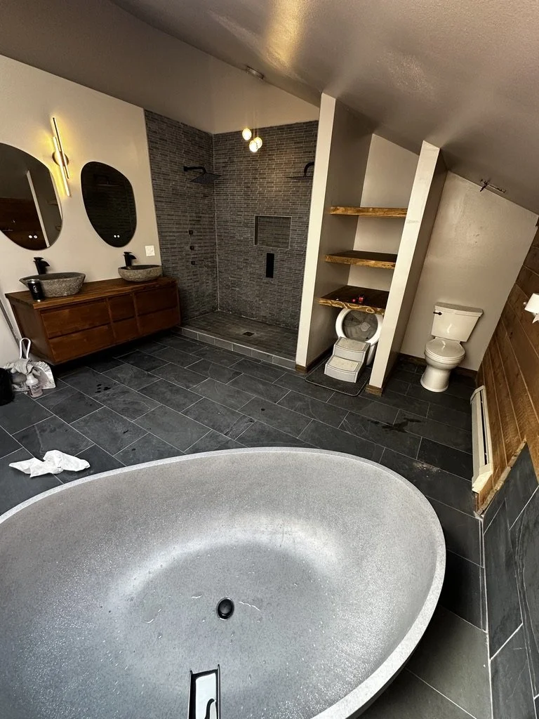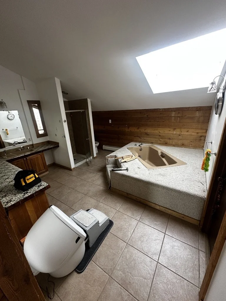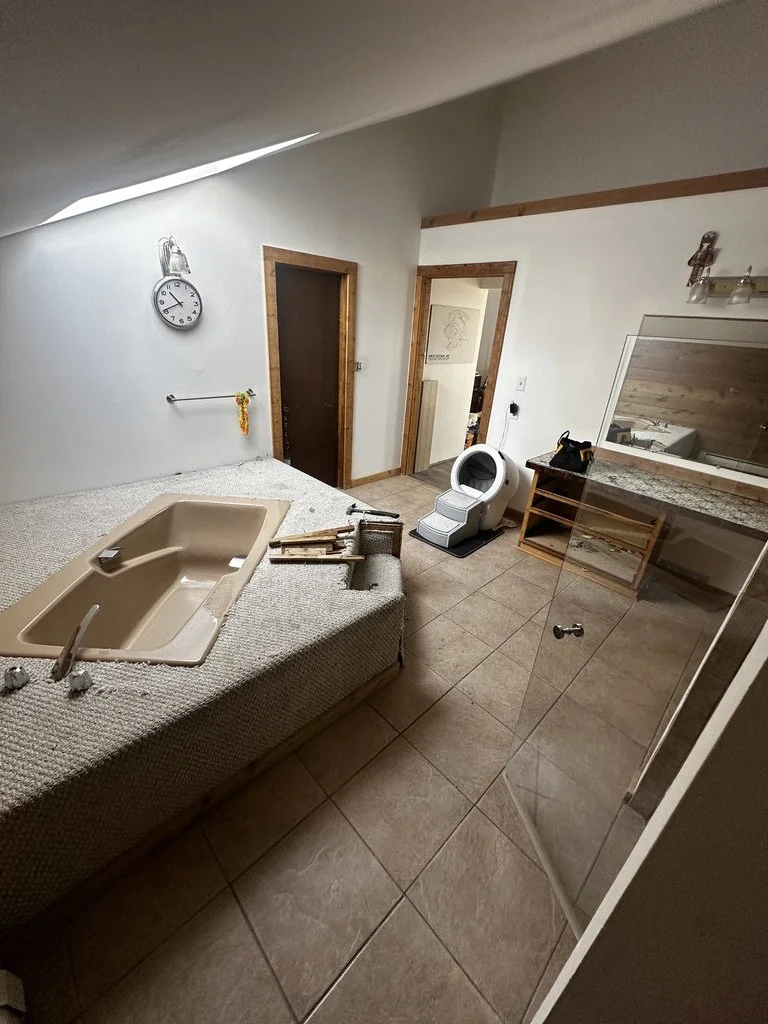 This bathroom had carpet wrapped around the old jacuzzi tub-yes, really! It was definitely time for an upgrade. We reworked everything with new plumbing, fresh lighting, and a spacious tile shower that makes a statement. Topped off with a stunning freestanding tub, this master bath is now equal parts luxurious and inviting.