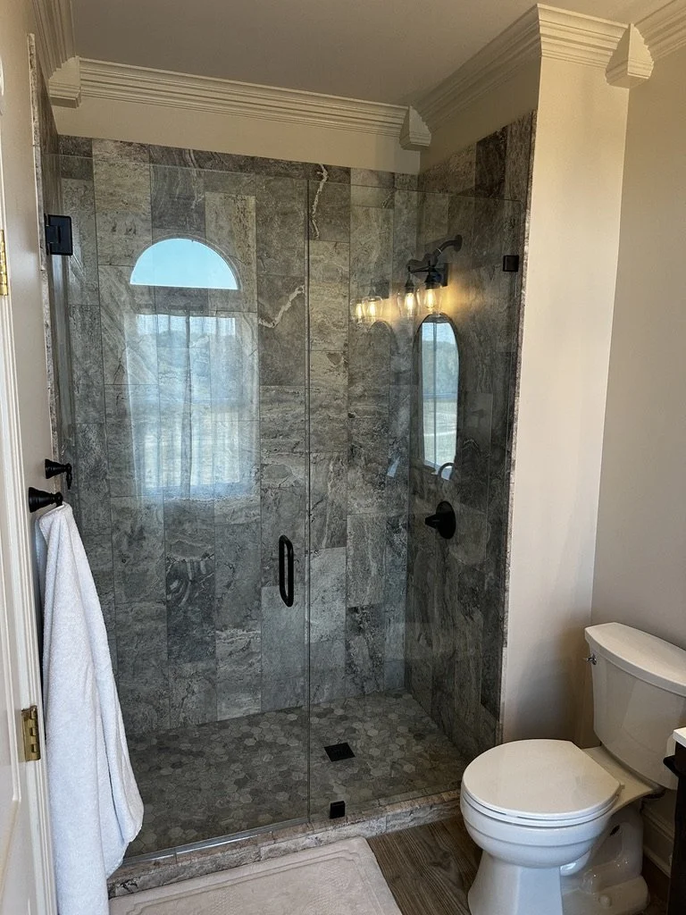 This bathroom was nearly 30 years old and ready for a fresh start! We took it down to studs in the shower area, added new lighting, and incorporated a second sink for added functionality. The homeowner selected a beautiful stone for the shower, and once all the finishes came together, the result was a modern, inviting space that feels brand new!